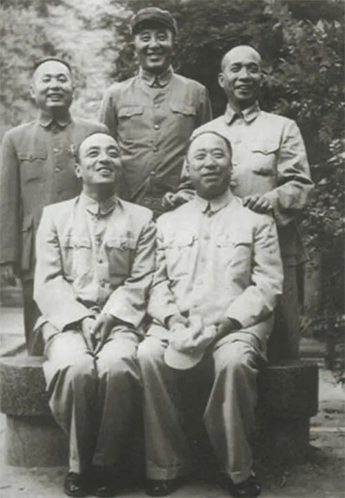 ◆杨尚昆(前左)与罗瑞卿、李富春、滕代远等在一起。
