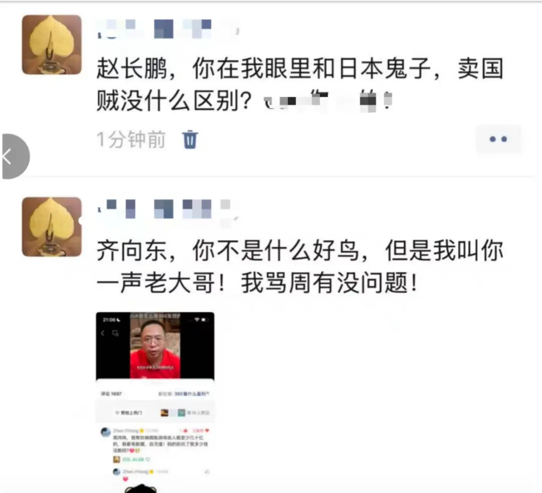 值得注意的是,玉红的“炮火”并未仅限周鸿祎一人。在相关群聊及朋友圈中,他还同时点名币安创始人赵长鹏、币安联合创始人何一、奇安信集团董事长齐向东等多位行业重量级人物,措辞犀利,情绪激昂。